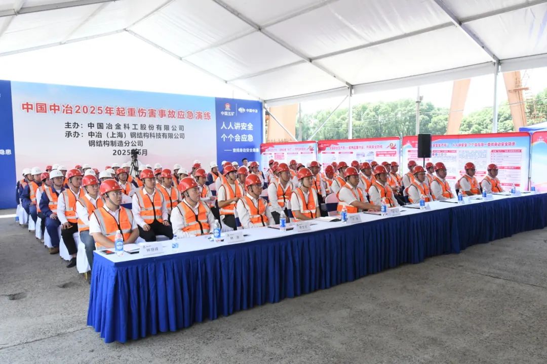 To thoroughly implement the important expositions and instructions of General Secretary Xi Jinping on work safety, firmly establish the safety concept of "putting people and lives first", and closely focus on the theme of the "Work Safety Month" – "Everyone Pays Attention to Safety, Everyone Can Respond to Emergencies – Identify Safety Hazards Around You", China MCC successfully held the 2025 emergency drill for crane injury accidents at MCC Steel Structure on June 28. This drill was hosted by China MCC and undertaken by MCC Steel Structure, aiming to comprehensively enhance the enterprise's emergency response capability in dealing with crane injury accidents, further strengthen the safety awareness of all staff, and effectively ensure the safety of staff's lives and property as well as the stable and orderly operations of the enterprise.