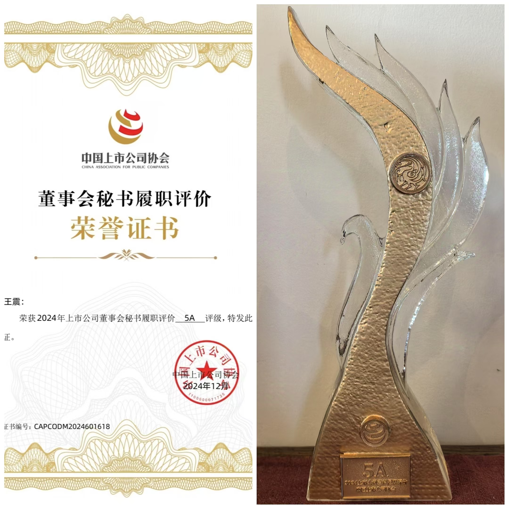 近日,中國上市公司協(xié)會發(fā)布“2024上市公司董事會秘書履職評價”結(jié)果,中國中冶、中國建筑、中國神華等225家公司董事會秘書從1385家參評公司中脫穎而出,榮獲5A評級,這是公司第二次獲此殊榮。